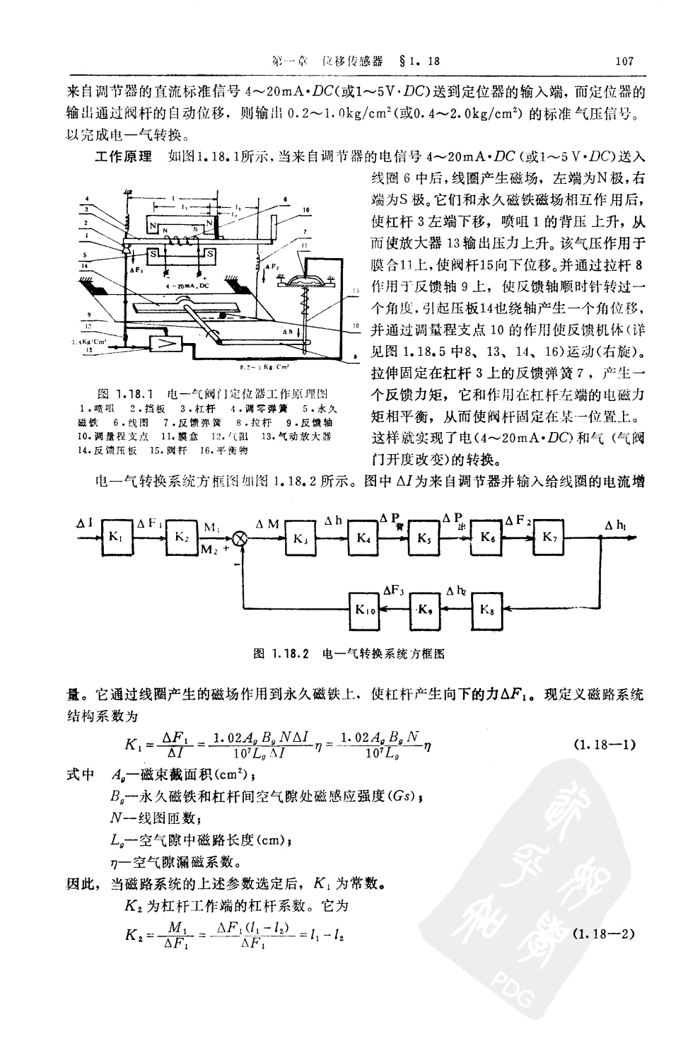 | 以下是引用片段: 電一氣閥門定位器,為DDZ-1型電動單元組合儀表中的一個重要的轉換單元。它把來自調(diào)節(jié)器的直流標準信號4?20mA/·DC(或1?5V·DC)送到定位器的輸入端,而定位器的 輸出通過閥桿的自動位移,則輸出0.2?1.0kg/cm2(或0.4?2.0kg/cm2)的標準氣壓信號。 以完成電一氣轉換。 工作原理 如圖1.18.1所示,當來自調(diào)節(jié)器的電信號4?20mA·DC(或1~5V·DC)送入線圈6中后,線圈產(chǎn)生磁場,左端為N極,右端為S極。它們和磁場相互作用后, 使杠桿3左端下移,噴咀1的背壓上升,從 而使放大器13輸出壓力上升。該氣壓作用于 膜合11上,使閥桿15向下位移。并通過拉桿8 作用于反饋軸9上,使反饋軸順時針轉過一 個角度,引起壓板14也繞軸產(chǎn)生一個角位移, 并通過調(diào)量程支點10的作用使反饋機體(詳見圖1.18.5中8、13、14、16)運動(右旋)。 拉伸固定在杠桿3上的反饋彈簧7,產(chǎn)生一 個反饋力矩,它和作刖在杠桿左端的電磁力 矩相平衡,從而使閥桿固定在某一位置上。 這樣就實現(xiàn)了電(4?20mA·DC)和氣(氣閥門開度改變)的轉換。 |