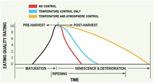 在這些因素應用合適的地方,控制和改變環(huán)境能夠非常明顯的延長某些水果和蔬菜貨物的存儲壽命。減緩它們的代謝速率可以延遲產品的自然成熟而不影響它的風味和口感。