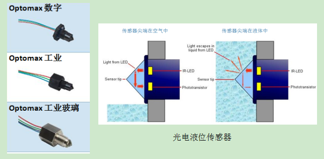 光電液位傳感器是根據(jù)光線在兩種介質的反射情況判斷此位置是有液體還是沒有液體的,兩種介質分別是空氣和液體。傳感器頭部暴露在空氣中時屬于無水狀態(tài),光線直接反射回傳感器的接收器;液體浸到傳感器頭部時屬于有水狀態(tài),光線會折射在液體,只有少量或沒有光線反射回接收器。傳感器根據(jù)這兩種狀態(tài)判斷輸出不同的電平信號。根據(jù)光電液位特性,安裝在箱體某個刻度,若防凍液過少時,發(fā)出警報。提醒車主及時保養(yǎng)