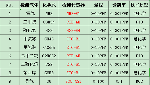 我國(guó)在《GB14554-93惡臭污染物綜合排放標(biāo)準(zhǔn)》列出了以下八種嗅閾值比較低的氣體:氨、三甲胺、硫化氫、甲硫醇、甲硫醚、二甲二硫、二硫化碳、苯乙烯。這八種氣體有有機(jī)物,也有無(wú)機(jī)物,只要是硫化物,占其中五種,生活中常聞到臭氣、異味也是來(lái)源于此。
