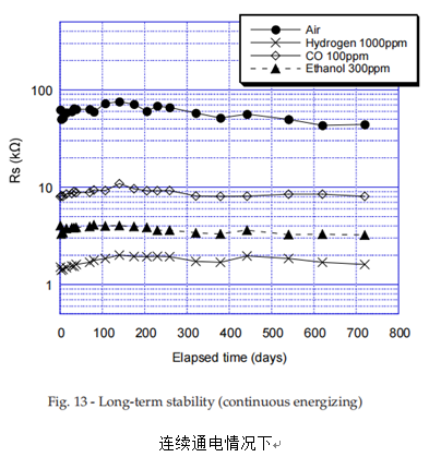 接下來我們再看看傳感器的長期穩(wěn)定性,畢竟性能不穩(wěn)定波動太大的話會導(dǎo)致傳感器誤報延報的,會嚴(yán)重危及人民的生命財產(chǎn)安全。而費(fèi)加羅的研發(fā)生產(chǎn)的TGS2620上市時間足夠長,經(jīng)受住了市場的考驗。長期穩(wěn)定性可以參考下圖。可以看得到TGS2620的性能十分穩(wěn)定。