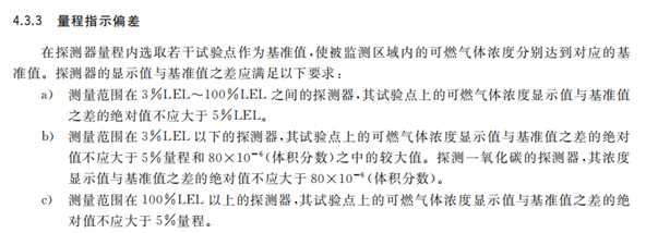 同時也要求有濃度顯示,并且對量程指示偏差范圍也做了規(guī)定: