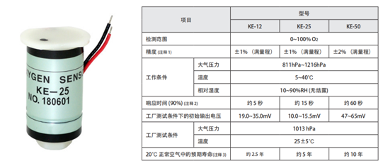 KE系列(KE-12/KE-25/KE-50)氧傳感器是一種獨(dú)特的伽伐尼電池式氧氣傳感器。其顯著特點(diǎn)是使用壽命長(zhǎng),具有優(yōu)良的化學(xué)穩(wěn)定性,而且不易受CO2的干擾與影響。KE系列傳感器是為了滿足各種行業(yè)檢測(cè)氧氣的不斷增長(zhǎng)的需求而開發(fā)的。