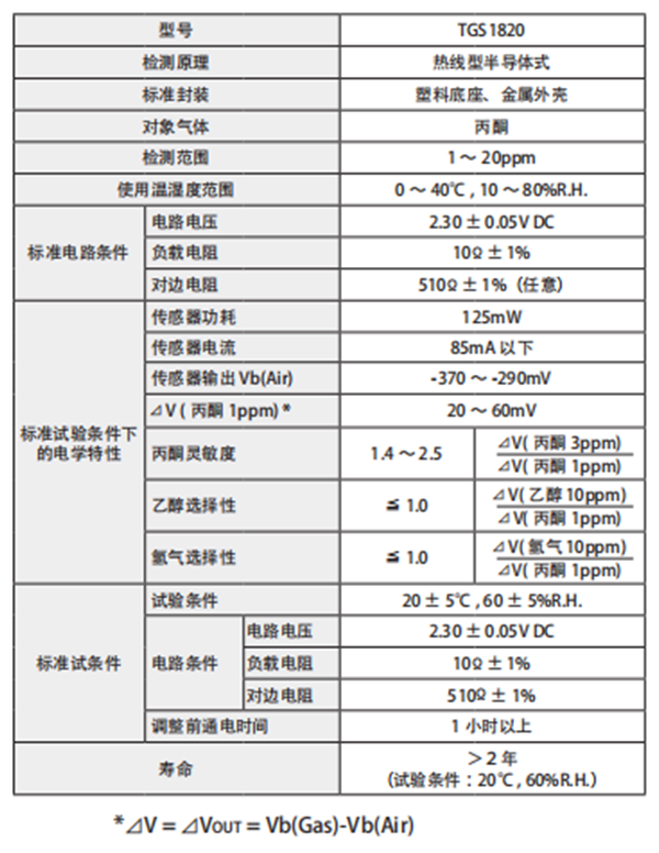 一、TGS1820 (檢測丙酮的氣體傳感器)主要特點(diǎn):