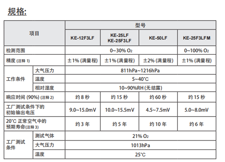 KE-LF系列 是一種由日本Maxell株式會社研發(fā)的無鉛伽伐尼電池式氧氣傳感器。每種型號都有各自的特點,以滿足不同的應用需求。通常擁有長達5年以上的使用壽命,且在不同環(huán)境條件下都能保持穩(wěn)定的性能表現(xiàn)。這不僅減少了維護和更換的頻率,降低了使用成本,還提高了設備的整體可靠性和連續(xù)運行能力。