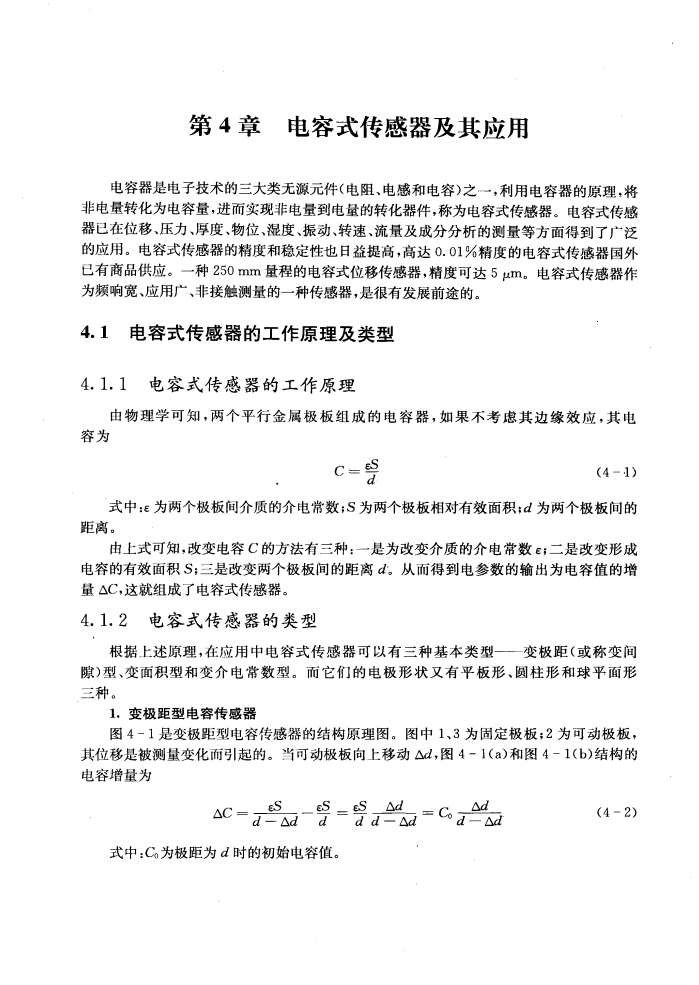 | 文摘: 4.1.2電容式傳感器的類型 根據(jù)上述原理,在應(yīng)用中電容式傳感器可以有三種基本類型——變極距 1.變極距型電容傳感器 圖4-1是變極距型電容傳感器的結(jié)構(gòu)原理圖。圖中1、3為固定極板;2為可動(dòng) |