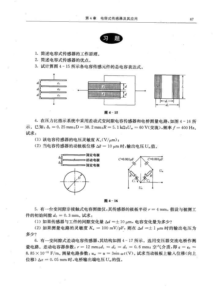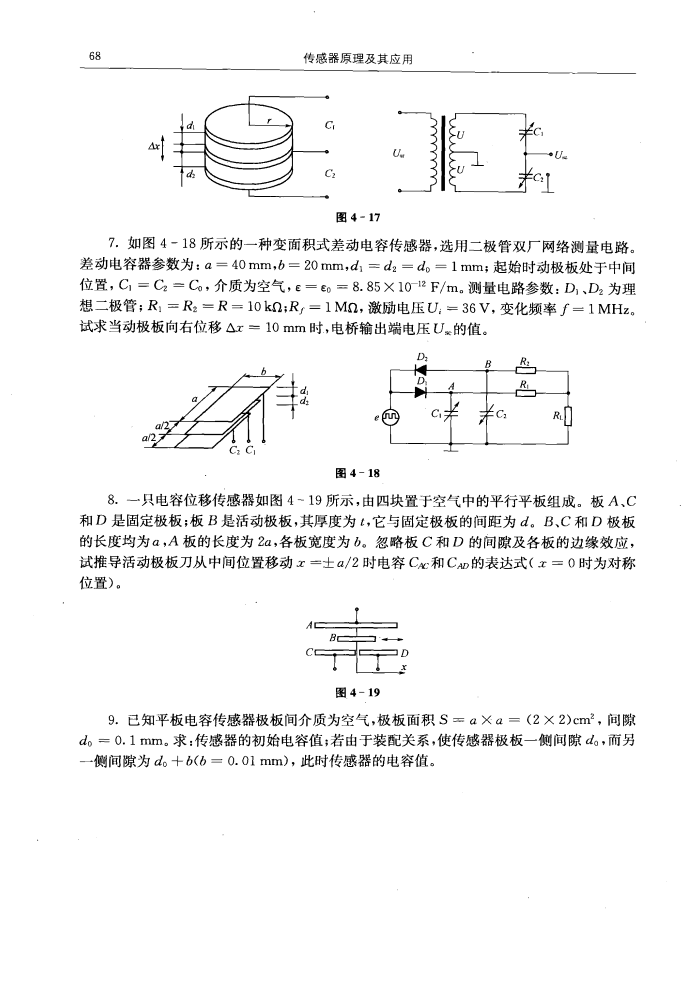 | 文摘: 圖4-14是電容式差壓傳感器結(jié)構(gòu)示意圖。這種傳感器結(jié)構(gòu)簡(jiǎn)單、靈敏度 高、響應(yīng)速度快(約100ms)、能測(cè)微小壓差(0?0.75 Pa)。它是由兩個(gè) 玻璃圓盤和一個(gè)金厲(不銹鋼)膜片組成。兩玻璃圓盤上的凹面深約25 mm,其上鍍金屬以作為電容式 傳感器的兩個(gè)固定極板,而夾在兩凹圓 盤中的膜片則為傳感器的可動(dòng)電極,則形成傳感器的兩個(gè)差動(dòng)電容C1、 C2。當(dāng)兩邊壓力p1、p2相等時(shí)。膜片處在中間位置與左、右固定電容間距 相等,因此兩個(gè)電容相等…… |