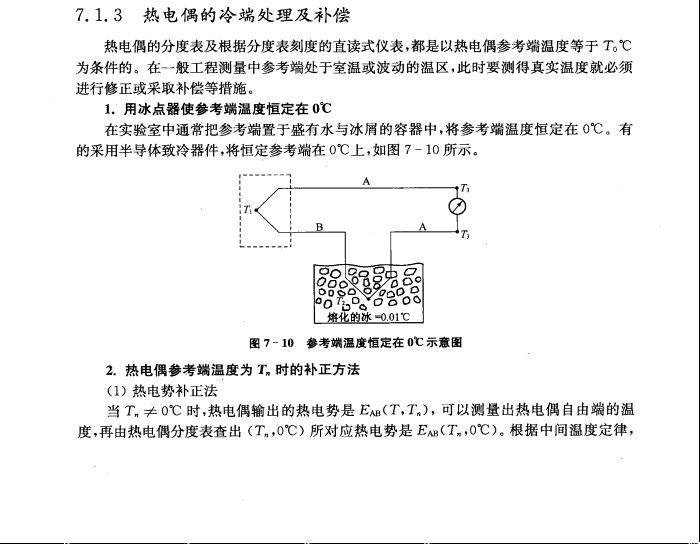 | 文摘: 熱電偶的冷端處理及補償 熱電偶的分度表及根據(jù)分度表刻度的直讀式儀表,都是以熱電偶參考端溫 1.用冰點器使參考端溫度恒定在0攝氏度 在實驗室中通常把參考端罝于盛有水與冰屑的容器中,將參考端溫度恒定 |