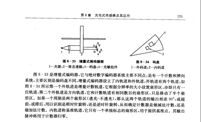 | 文摘: 角度數(shù)字編碼器又叫碼盤,碼盤是個薄的圓盤,碼道的數(shù)目決定了系統(tǒng)分辨率, 若碼道數(shù)目為n則分辨率為1/2。碼道的寬度由敏感組件的幾何參數(shù)和物理特性確 定。角度數(shù)字 編碼器有兩種基木類型:絕對式編碼器和增量式編碼器。前者由于 所用的碼道多、結(jié)構(gòu)較復雜,所以響應(yīng)速慢,只能用于角位置或低的角速度測量, 而增量式編碼器由于碼少、結(jié)構(gòu)簡單,響應(yīng)速度快,可用于較高速度的角位移測量。 |