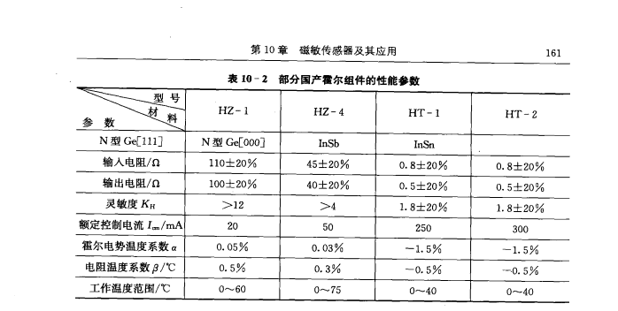 10. 1. 3 霍爾組件主要技術(shù)指標
