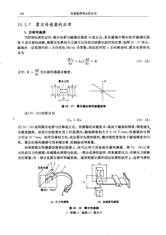 | 文摘: 當(dāng)控制電流恒定時,霍爾電勢與磁感應(yīng)強度B成正比,若在磁場中霍 爾組件磁感應(yīng)強度B是位置的函數(shù),則霍爾電勢的大小就可以用來反 映霍爾組件的位置,如圖10 - 17所示。 磁場在一定范圍內(nèi)沿x方向變 化dB/dr為常數(shù),因此組件沿x方向移動時,霍爾電勢的變化為…… |