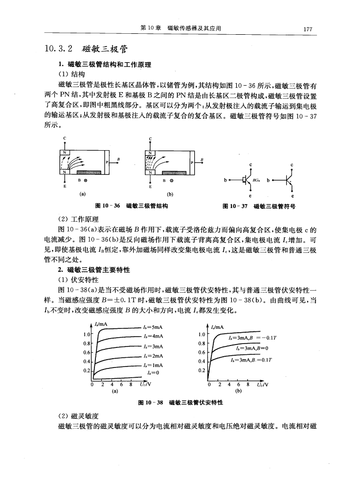| 文摘: (1)結(jié)構(gòu) 磁敏三極管是極性長基區(qū)晶體管,以鍺管為例,其結(jié)構(gòu)如圖10-36 |