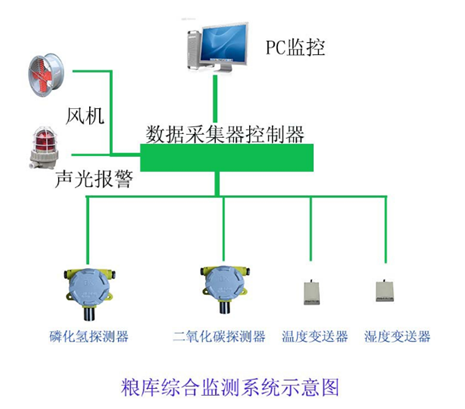 倉儲業(yè)務(wù)管理系統(tǒng)糧情測控預(yù)警模塊在現(xiàn)有數(shù)字測溫基礎(chǔ)上,還應(yīng)融合糧堆的氣體、濕度、蟲害的檢測自動(dòng)分析功能,所測數(shù)據(jù)寫入歷史數(shù)據(jù)庫,為科學(xué)儲糧的精確決策提供大數(shù)據(jù)支撐,在此基礎(chǔ)上逐步建立糧情專家決策系統(tǒng)。當(dāng)在糧情發(fā)生異常變化時(shí),系統(tǒng)發(fā)出的報(bào)警直接短信通知到相關(guān)責(zé)任人手機(jī),并根據(jù)本地區(qū)儲糧生態(tài)數(shù)字模型,經(jīng)系統(tǒng)綜合分析后,推薦處理意見;甚至直接和智能通風(fēng)、熏蒸殺蟲、氣調(diào)儲藏等設(shè)備相關(guān)聯(lián),授權(quán)后自動(dòng)采取相應(yīng)措施,真正實(shí)現(xiàn)“測”與“控”的完美融合。如下圖糧庫綜合監(jiān)測系統(tǒng)模型: