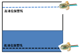 因?yàn)槭枪蚕盹嬈肥圪u機(jī),所以在機(jī)器里面需要安裝一個(gè)檢測(cè)液位的,特別是得售賣熱飲的飲品機(jī),當(dāng)飲品達(dá)到某一限制高度時(shí),需停止再往容器里注水,否則會(huì)產(chǎn)生溢出,輕則導(dǎo)致泄漏,重則會(huì)引起機(jī)器內(nèi)部線路受水短路后嚴(yán)重起火或者爆炸。但是當(dāng)飲品降到某一高度時(shí),這時(shí)也需要通過(guò)液位傳感器能夠檢測(cè)到該液位的狀況從而使加熱裝置停止運(yùn)轉(zhuǎn),以免因此產(chǎn)生了干燒,造成不必要的損失。不過(guò)如下圖所示,只要通過(guò)在共享售賣機(jī)內(nèi)部的容器壁上裝上兩個(gè)液位開(kāi)關(guān),這樣就能隨時(shí)檢測(cè)到容器內(nèi)部的液體量,從而根據(jù)實(shí)際的需要來(lái)確定機(jī)器相關(guān)器件的啟動(dòng)和停止。