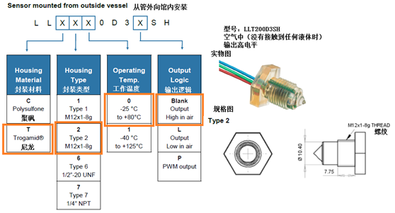 但是,由于需要與飲品直接接觸,所以這對(duì)傳感器的具體材料也規(guī)定了嚴(yán)格要求,zui主要的就是能和食品接觸并且無(wú)毒無(wú)害。SST生產(chǎn)的液位開(kāi)關(guān)則非常好地滿足這個(gè)條件。上圖中使用的型號(hào)就是由英國(guó)SST生產(chǎn)的液位開(kāi)關(guān)LLT200D3SH。該型號(hào)相關(guān)信息如下。
