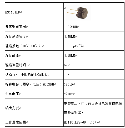 濕度對(duì)打印機(jī)有如此大的影響,那打印機(jī)內(nèi)部必須對(duì)濕度值有一個(gè)監(jiān)控和管理。首先是紙張方面,大多數(shù)紙質(zhì)包裝材料都含有防潮材料,所以將紙張存放在包裝紙中直至需要打印才拆開,這對(duì)保護(hù)紙張有很大作用。通常打印機(jī)內(nèi)部都會(huì)使用濕度模塊來測(cè)量打印機(jī)內(nèi)部空氣相對(duì)濕度,如果濕度超過了小于20%RH,或者大于60%RH,那么在打印機(jī)內(nèi)部加裝的加濕器和除濕器就要工作起來了。推薦使用高分子濕敏電容HS1101LF制成濕度測(cè)量模塊來測(cè)量打印機(jī)的空氣相對(duì)濕度,下面是HS1101LF的參數(shù)