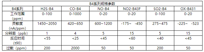 B4系列除了針對氮氧化物的監(jiān)測,也提供了其他的幾種常見的大氣中有毒氣體的監(jiān)測: