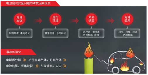 但是,這些新能源汽車中以鋰電池為主,基本上都是以鋰電池作為儲能器件。眾所周知,鋰是一種非?;顫姷脑兀@種特性使得鋰電池在一些情況下出現(xiàn)熱失控,比如熱沖擊、電沖擊、短路、碰撞等,就很可能發(fā)展為起火爆炸的狀況了,若是此時駕乘人員不能及時發(fā)現(xiàn)并撤離,那么就很有可能造成人員傷亡了。