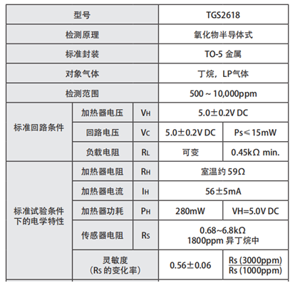 TGS2618:對(duì)液化氣靈敏度高、體積小、低功耗、應(yīng)用簡(jiǎn)單