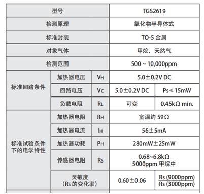 TGS2619對(duì)天然氣靈敏度高、體積小、低功耗、應(yīng)用簡(jiǎn)單