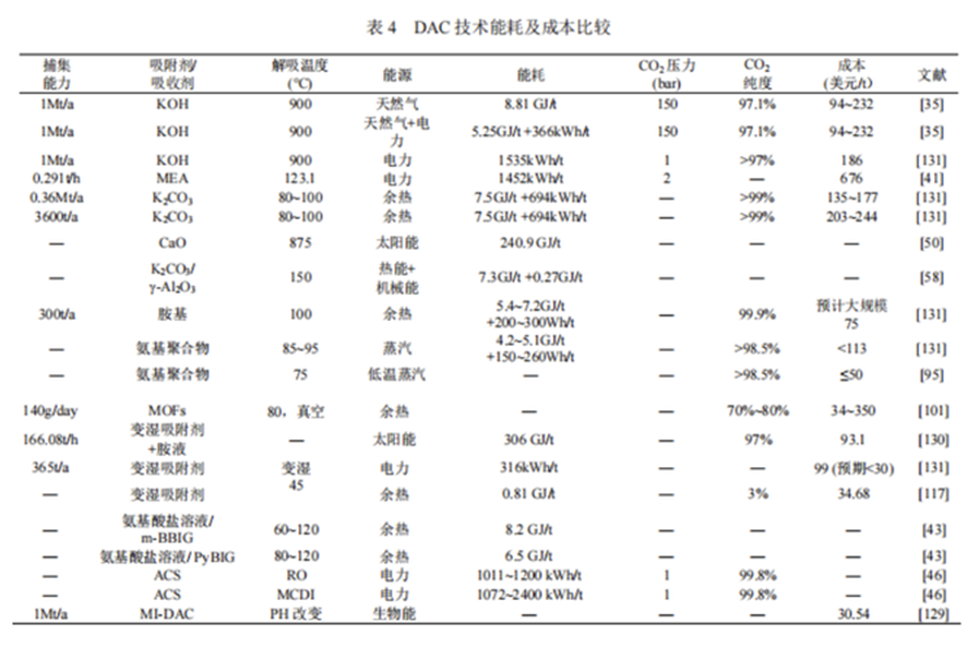 ⑤光誘導擺動吸附與MI-DAC技術正處于研究初級階段,目前看來再生能耗較低,十分具有經(jīng)濟性。